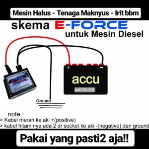 aplikasi sangat mudah pasang E-Force di Aki + (kabel merah) Aki - (kabel hitam) dan body mobil (kabel hitam) , bisa untuk semua jenis mesin diesel konvensional dan modern engine (commonrail) diesel